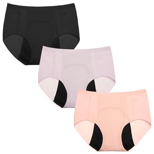INNERSY periodiska underkläder flickor sömlös lätt blödning sömlös menstruation trosor 8–16 år 3-pack, Svart/rosa/lila, 10-12 år