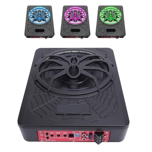 10-tums 800W Bilsubwoofer, Smal Bilsubwoofer Under Sätet med LED-omgivande Ljus, Inbyggd Förstärkare, Fjärrstyrd Bas (COLORFUL)