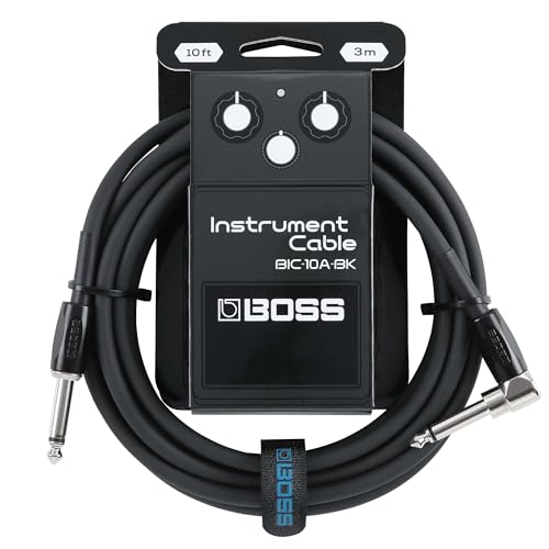 BOSS BIC-10A Series | instrumentkabel | rak till rätvinklad ¼-tums kontakter | 10ft./3m längd | högkvalitativa kablar till gitarr, bas, m.m. | tysta och hållbara | Svart