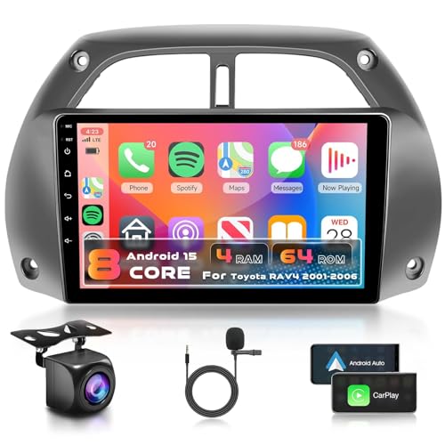 Inefala 8 core Qualcomm Android 15 4 64G radio pantalla för Toyota RAV4 2001-2006 med trådlös Carplay och Android Auto, 10 tums skärm med spegel länk radio FM/RDS GPS WIFI BLUETOOTH SWC