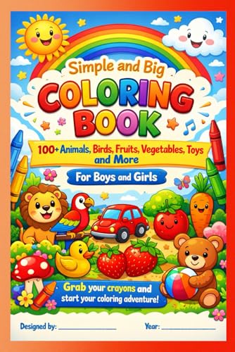 Simple and Big Coloring Book- 100+ Animals, Birds, Fruits, vegetables, toys and more for Boys and Girls