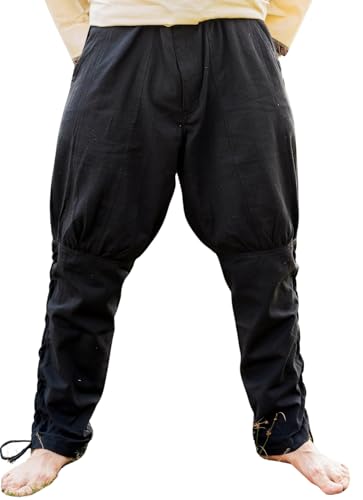 Leonardo Carbone® vikingabyxor med bensnörning magnus – herrbyxor, medeltida kläder, vikingabyxor, kostym, festivaloutfit, LARP, cosplay, fritidsbyxor – 100 % bomull, svart, 3XL