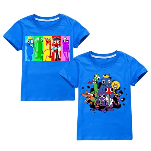 TBNRFrags 2 st barn 100 % bomull t-shirt kortärmad kläder grafisk t-shirt barn cool tecknad topp t-shirt, BLÅ, 9-10 År
