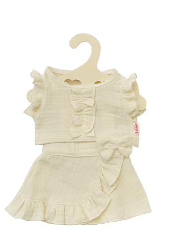 Heless 1422-Kläder i 100 % ekologisk bomull, 2-delat set med plånbokskjol och Ecru volangtopp för dockor och plysch i storlek 28–35 cm, beige, 1422