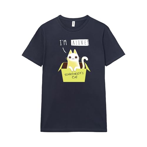 Pampling Unisex kortärmad t-shirt 100 % bomull, lyser i svart, kläder för herr och dam i 5 storlekar, blå T-shirt, Schrodingers husdjur modell, Färg: blå, M
