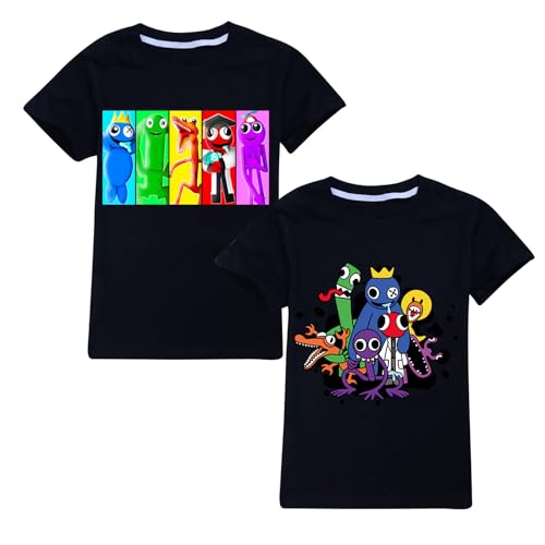 TBNRFrags 2 st barn 100 % bomull t-shirt kortärmad kläder grafisk t-shirt barn cool tecknad topp t-shirt, Svart, 9-10 År