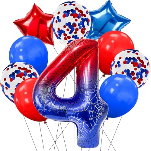 DazzJoy Spinne födelsedagsdekoration 4 år pojke, Spindelballong 4 år, spindlar 100 cm (40 tum), 4 ballonger, Spinne dekoration födelsedag 4 pojke, spindelheliumballong 4. Födelsedag pojkar