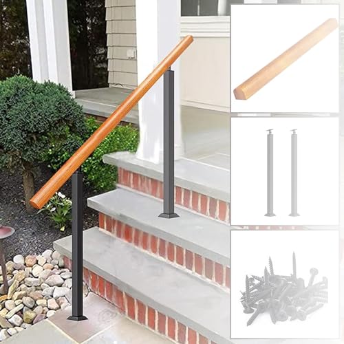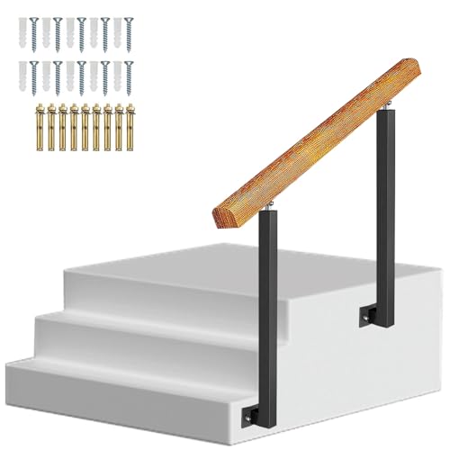 Justerbart trappräcke för utomhustrappor inomhus, passar 1 till 3 stegs ledstång i massivt trä med installationssats för trädgård, husingång, balkong, sidomontering(Height 95cm,100cm/40inch)