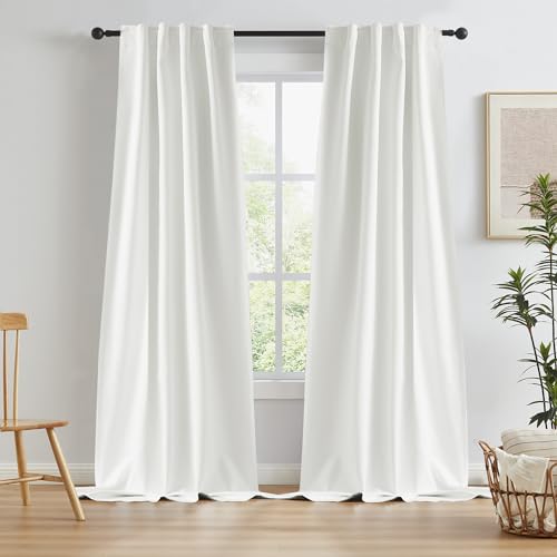 HPD Halvt pris draperier genomföring signatur mörkläggning sammet gardin extra bred 100 x 108 (1 panel), VPCH-VET1219-108-GR, benvit, polyesterblandning, 100 cm x 108 tum