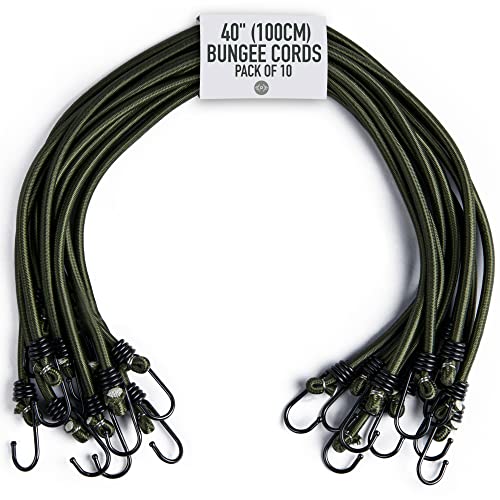Pluvios - 100 cm (40 tum) kraftiga bungee-snören med krokar – 10-pack – olika storlekar – multifunktionella elastiska bungee-remmar för bagageremmar, camping – väderbeständig och UV-beständig