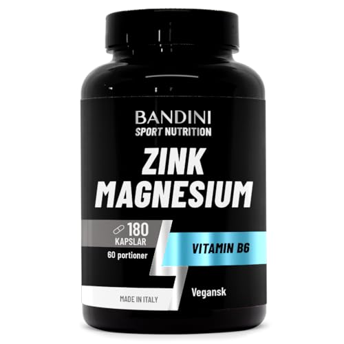 Bandini® Zink Magnesium 180 kapslar (60-dagars) Zink-, magnesium- och vitamin B6-tillskott - Energi, återhämtning och muskelmassa - Minskar trötthet och utmattning - För män och kvinnor - 100% vegansk