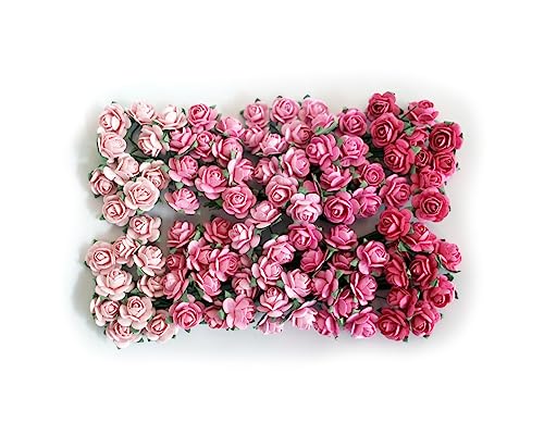 KADADSA 100 st små konstgjorda rosor blandade rosa fem färger mullbär pappersblomma 15–18 mm blomma bröllop scrapbooking