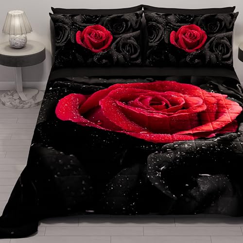 PETTI Artigiani Italiani - Sommaröverkast för dubbelsäng, 260 x 270 cm, 100 g/m², dubbeltäcke för vår, lätt täcke, svarta rosor, 100% tillverkat i Italien
