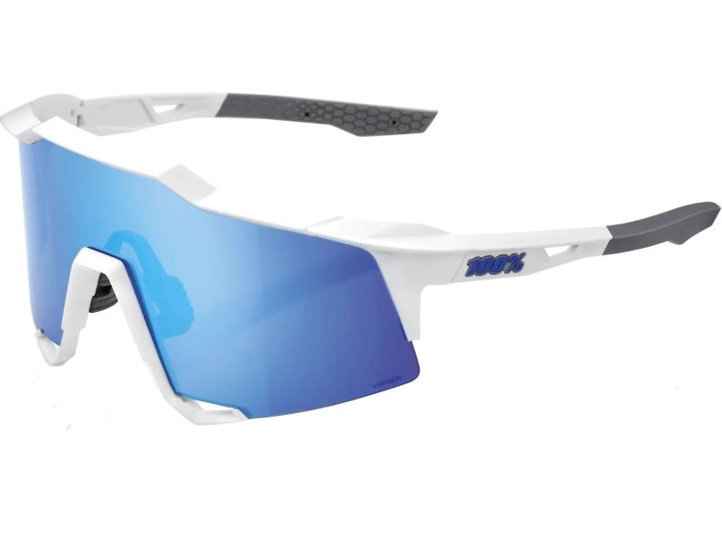 100% Glasögon 100% Speedcraft Sl Matte White/Metallic Blue - Hiper Blue Multilayer Mirror Lens (Blue Mirror Lens, Ljusgenomsläpp 15% + Clear Lens, Ljusgenomsläpp 93%) (Ny)
