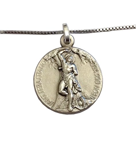 925 sterling silver Saint Sebastian medalj med silverkedja – 100 % tillverkad i Italien – The Patron Saints medaljer, Medium, Sterlingsilver, Sankt Sebastian