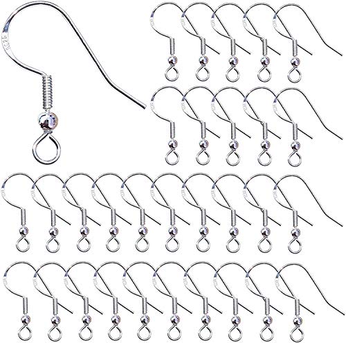 100 st silver örhängeskrokar 925 sterling silver örontrådar fiskkrok örhänge med fjäderboll för gör-det-själv smycken anpassa tillverkning (silver)
