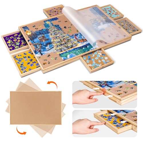Becko US 1000-bitars roterande pusselbräda med 6 sorteringslådor & genomskinligt PP-lock, push-to-open-design, snurrande pusselbord med Lazy Susan för vuxna och barn, för pussel med 1000 bitar
