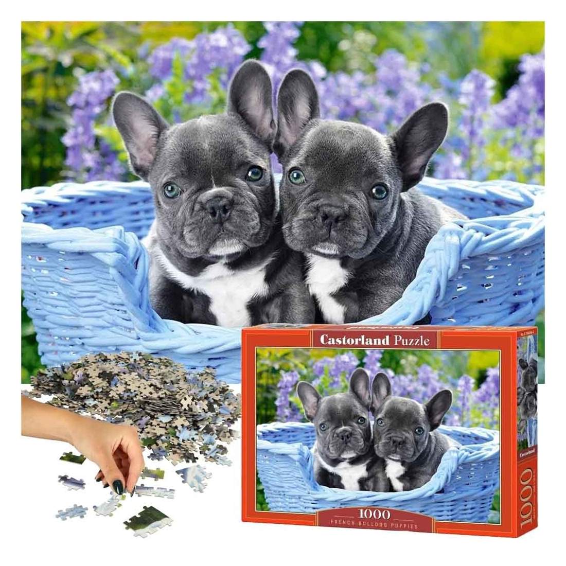 1000-bitars Pussel: Söta Bulldogvalpar, 68x47 cm