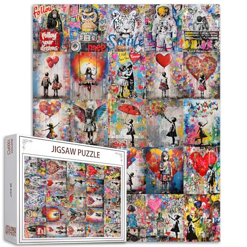 Tucocoo Graffiti Gatukonst 1000 Bitars Pussel för Vuxna - Färgglada Banksy Flickcollage Artwork för Utmanande Familjeaktivitetsspel, Heminredning och Gåvor