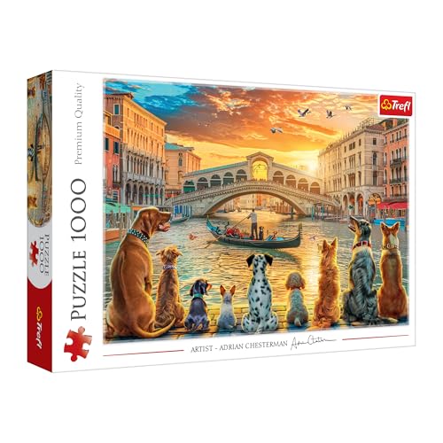 Trefl - Hundar i Venedig - 1000-bitars pussel - Pussel med motiv av hundar vid kanalen i solnedgången, för vuxna och barn från 14 år