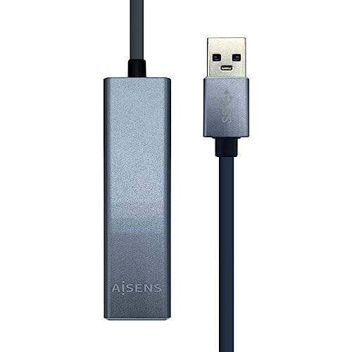 AISENS - A106-0401 USB 3.0 till gigabit Ethernet 10/100/1000 Mbps + Hub 3xUSB3.0, Grå, 15cm