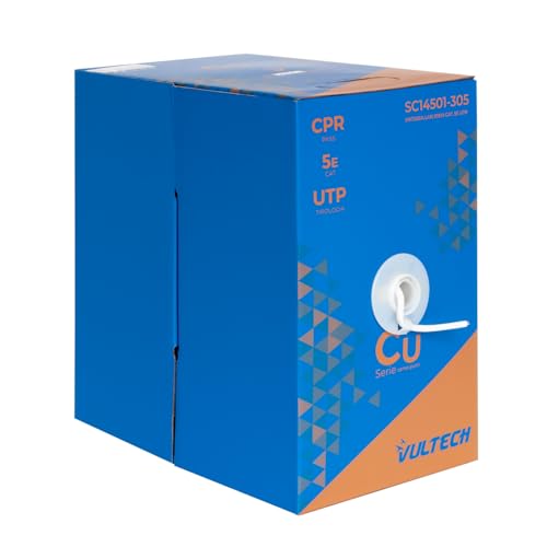 VulTech SC14501-305 Lan Cat. 5E UTP 305 meter 23AWG CU CPR PASS LSZH kabelkanal Ethernet nätverksspole CAT. 5E UTP PURE CUPPER idealisk för höghastighetsnätverk 10/100/1000 Mbps system