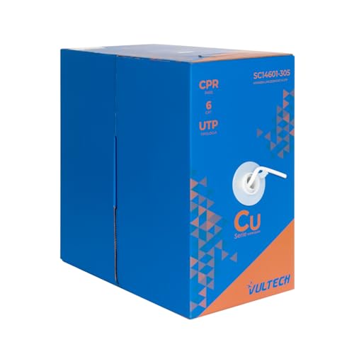 VulTech SC14601-305 Spole Matassa Lan Kategori 6 UTP 305 meter 23 AWG CU CPR PASS LSZH Ethernet-kabelnätverk höghastighetssystem 1 Gbps Cat6 100 ohm, ren RAM 10/100/1000 Mbps