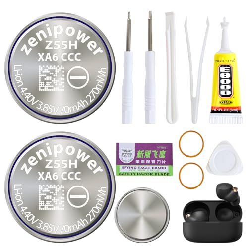 YUFEEI 2 stycken Z55H-batterier, för WF-1000XM4 WF-1000XM3 WF-SP900 WF-H800 WF-SP700N WF-XB700 WF-C700N WF-C500 WI-SP6000N med självhäftande verktyg
