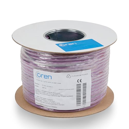 HB-DIGITAL 100 m nätverkskabel Cat.7A LAN-installationskabel AWG23/1 lila Kabel kat.7 koppar Profi S/FTP PIMF LSZH halogenfri RoHS-kompatibel Cat7a en Ethernet-datakabel 10 Gbit 1000 MHz