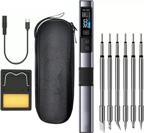 Besttoolifes HS-02B 100 W bärbart lödkolvssats, 2S snabb uppvärmning, 100-450 °C, förinställd 3 gruppstemperatur, 3 210 lödspetsar, smart digital lödkolv pennverktyg (set 2-HS-02B)