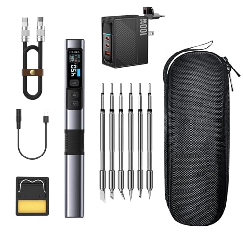 Bärbar lödkolv kit, HS-02B 100W 2S snabb uppvärmning, 212-842℉, 3-förinställda temperaturgrupper, 3 lödspetsar, smart digitalt lödkolv verktyg för reparationer.