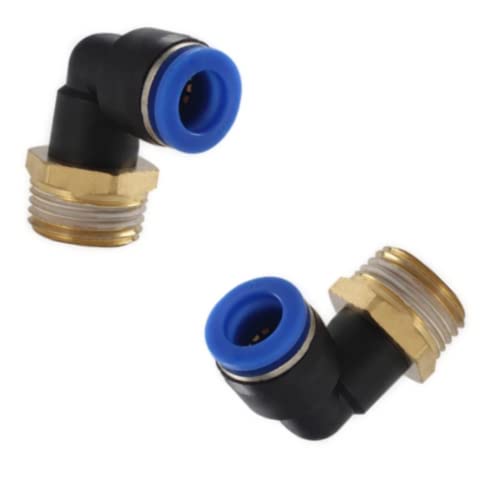 CNCTEC Pneumatisk plugg skruvanslutning set om 2 stycken R 1/2 tum - 10 mm IQS, 90° vinkel slanganslutning (1/2 tum - 10 mm)
