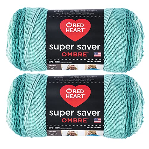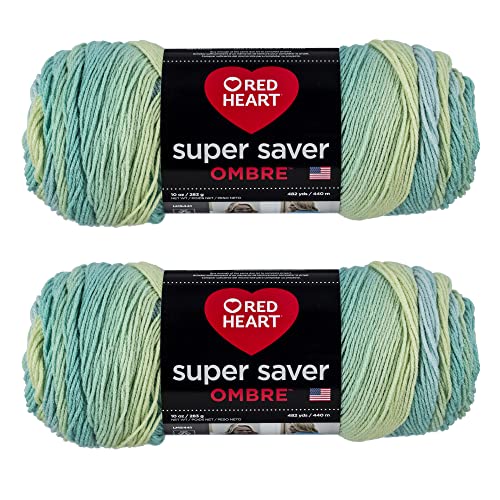 Red Heart Super Saver Jumbo Spearmint Ombre-garn – 2-pack à 283 g (10 oz) per nystan, akrylgarn i viktklass 4 (medium/worsted). Varje nystan innehåller 440 meter, perfekt för stickning och virkning.
