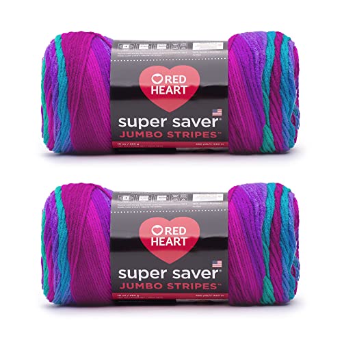 Red Heart Super Saver Jumbo Sutherland Stripe-garn – 2-pack à 283 g (10 oz) per nystan, akrylgarn i viktklass 4 (medium/worsted). Varje nystan innehåller 440 meter, perfekt för stickning och virkning.