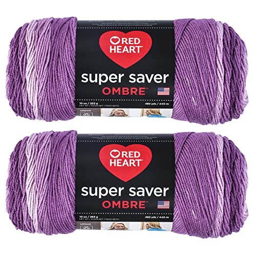 Red Heart Super Saver Jumbo Violet Ombre-garn – 2-pack à 283 g (10 oz) per nystan, akrylgarn i viktklass 4 (medium/worsted). Varje nystan innehåller 440 meter, perfekt för stickning och virkning.
