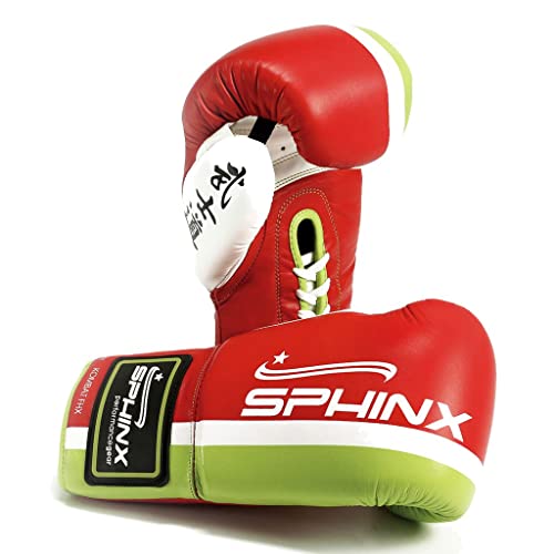 SPHINX PRO Fight Kombat FHX, mjuk och slät, handgarvad, läder för en handske som är en topp i sortimentet, professionell, för sport och internationella tävlingar. Unisex vuxen, röd, 10 OZ