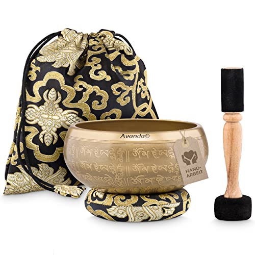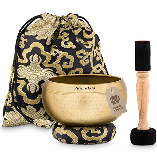 Avanda Tibetanskt sångskål-set för yoga, meditation, avkoppling - hamrad tibetansk ljudskål 13,5 cm, dubbelvidd, ringkudde, påse, instruktioner | Note 1,1 från testhjäldinstitutet