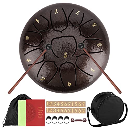 Yuehao Tongue Drum 11 toner 6 tum, tungtrumma skivtrumma, stålpanna ljud slaginstrument handpannan trumma med tillbehörslåda, väska, fingerplockning, musikbok och klubba för meditation yoga ljudläkning