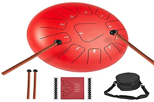 VEVOR slagverk, 11 toner 10 tum tungtrumma röd, stål tongue trumma, handkanna trumma med trumracketar, bärväska, anteckningspinnar för meditation, yoga, ljud-läkande