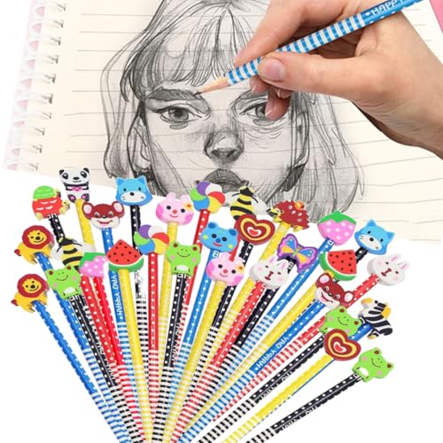 Cutiolly Tecknade barnpennor med suddgummi - 30 st papperspenna, HB-trä, söta - skolbrevpapper barnfest