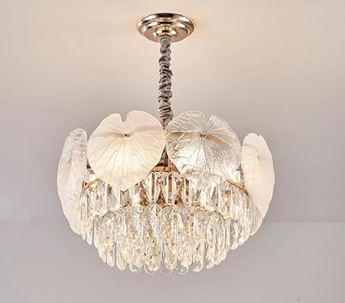 Modern fransk ljuskrona med kristall och skal accenter - Lyxig belysningsarmatur för vardagsrum, matsal och sovrum (Diameter 50CM)