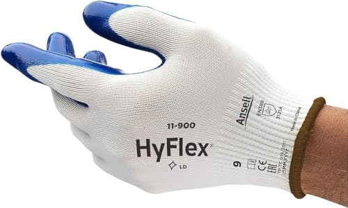 Ansell Hyflex 11-900 Oléofogs Arbetshandskar, nötningsbeständigt, mekaniskt skydd och industriella risker, kvinnors manliga säkerhetshandske, tvättbar, blå, storlek M (12 par)