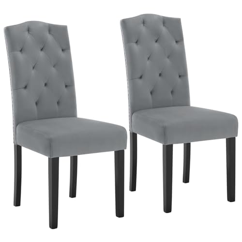Lestarain Matstol, set med 2, skandinavisk stol, köksstol med högt ryggstöd, vadderad sits, sammetsbeläggning, massiva träben, ljusgrå, LCNI119002-2
