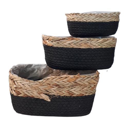 Rektangulära korgar imitation flätverk 30 x 22 x 7 cm svart Pp - 12 enheter