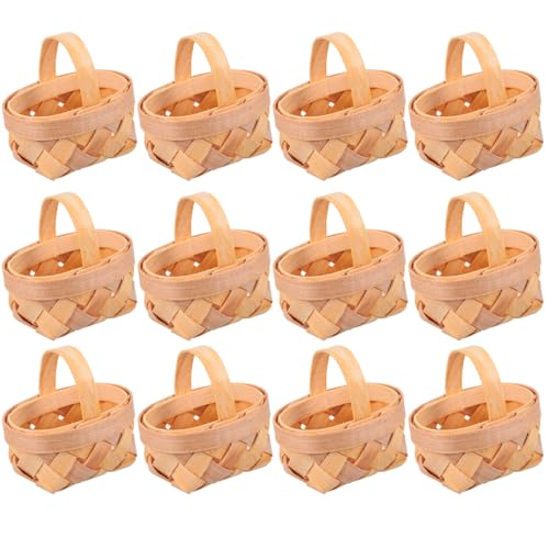 HEALLILY 12 st mini vävda korgar med handtag godis presentkorgar handvävda träfliskorgar för bröllop födelsedagsfest presenter