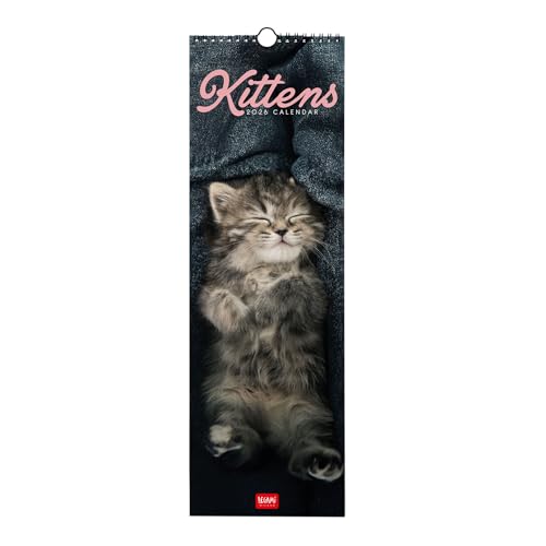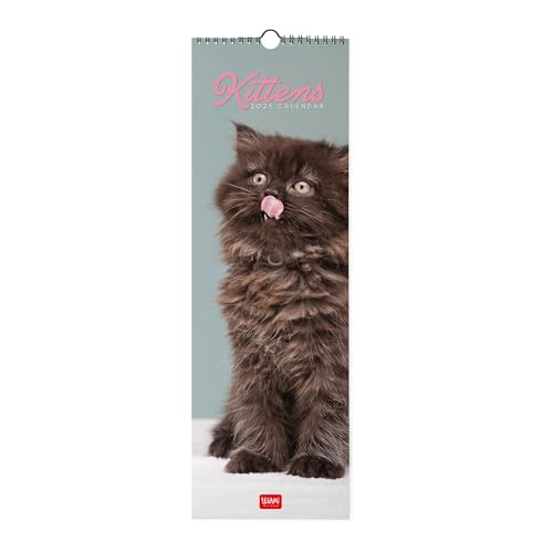 Legami Väggkalender 2026, Kittens, liten väggkalender, 12 månader och årsplanerare, 6 språk, anteckningsrum, stjärntecken, internationella helgdagar, 16 x 49 cm