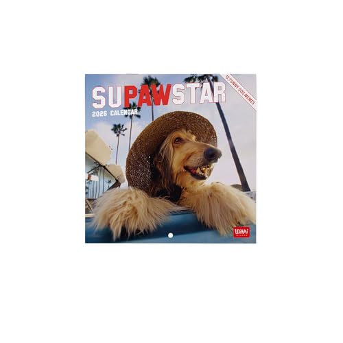 Legami Väggkalender 2026 Supawstar liten väggkalender 12 månader och årsplanerare på 6 språk, utrymme för anteckningar, stjärntecken, internationella helgdagar, 18 x 18 cm