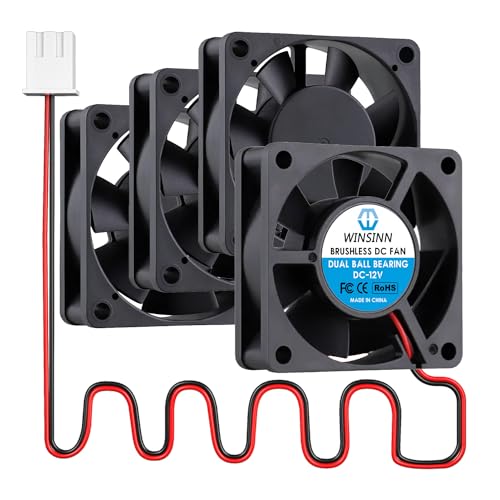 WINSINN DC 60 mm fläkt 12 V 6020 dubbelkullager 12 volt borstlös kylning 60 x 20 mm 2 PIN (4-pack)
