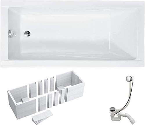 Badkar 120x70 cm Akrylset Badkarstöd Sifon Badkar Rektangel Vit Design Modern frigolitstöd Avloppsarmatur i krom Simplex (120x70 cm)