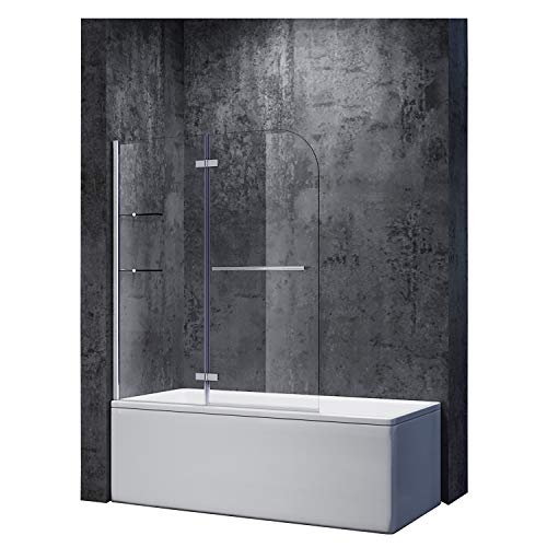 SONNI Duschvägg för badkar 120 x 140 cm (B x H) vikbar vägg 2-delad vikbar 6 mm NANO-glas duschavskiljare badkar